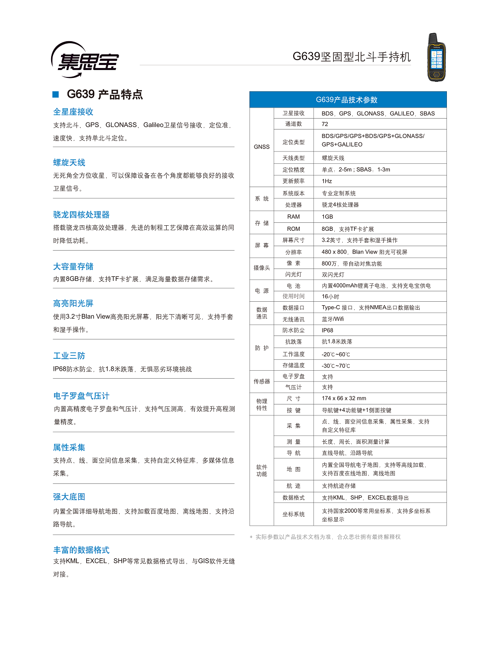 集思寶G639高精度手持GPS
