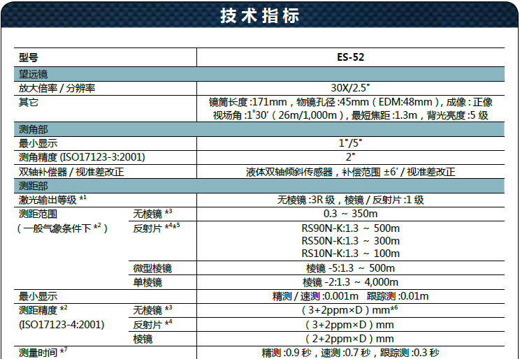 ● ES-52 采用的測角技術,可以獲得可靠的測角精度