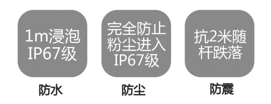 防水:1m浸泡,IP67級(jí)